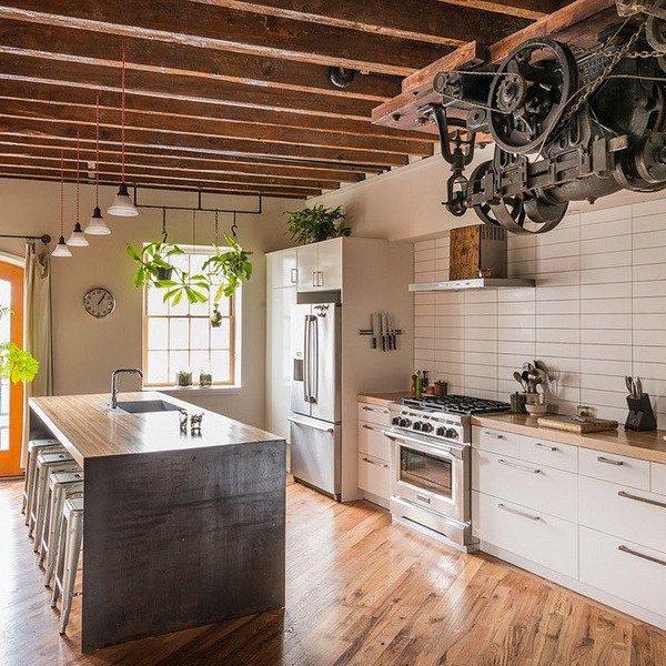 Индустриальный стиль лофт идеально вписывается в кухонное помещение. Именно здесь проще всего создать атмосферу, присущую фабричным или промышленным объектам. В дизайне кухни органично смотрятся основные элементы, определяющие это неординарное стилевое направление: