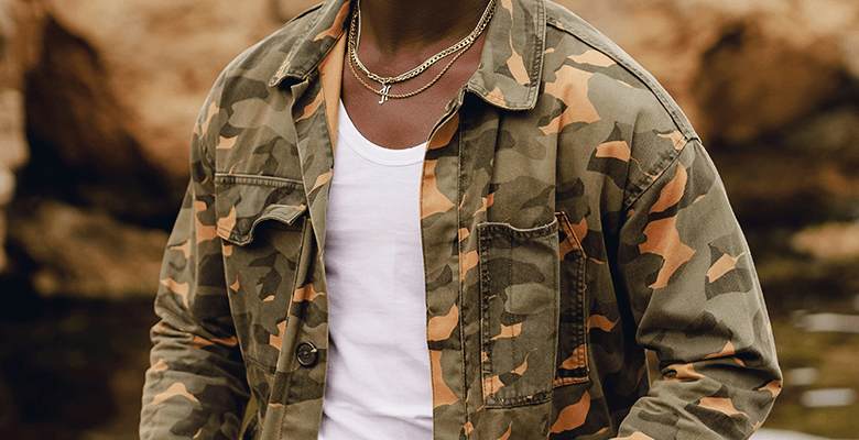 Камуфляжный – значит маскировочный, скрывающий. Цвет камуфляж обычно представляет собой сочетание пятен разных оттенков, имитирующих природные текстуры, например листву или песок. Сегодня камуфляжные принты вышли за рамки военного применения и стали модным трендом в одежде и дизайне.