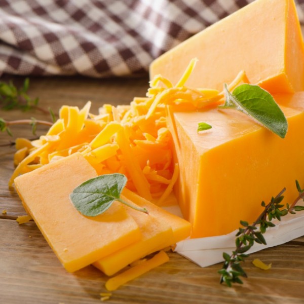 Чеддер – легендарный сыр, который придумали в Англии и готовят из коровьего молока. Характеризуется приятным сливочным вкусом, небольшой кислинкой и необычным послевкусием с ореховыми нотками. Классический цвет – желтый, но современные производители нередко добавляют пищевые красители.