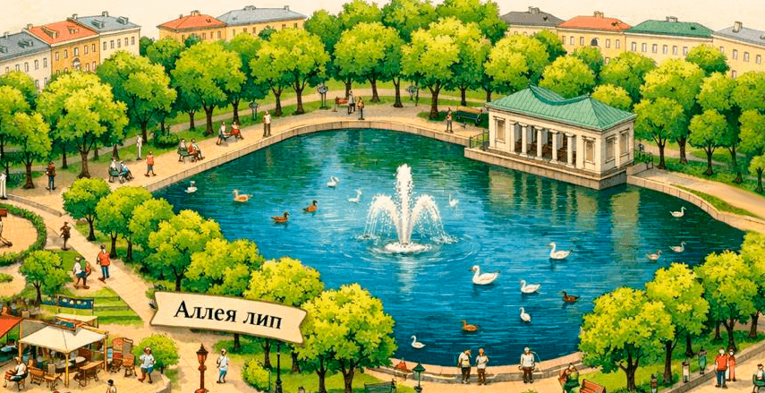 Липы вокруг Патриаршего пруда – это часть прогулочной Москвы, которая сложилась, когда в XIX веке вокруг оставшегося единственного пруда обустроили сквер-бульвар: окрестности водоема стали любимым местом встреч, неспешных разговоров и отдыха в летней тени. Тогда же аллеи озеленили привычными для города породами, в том числе липами и кленами, чтобы пруд был не «пейзажем», а живым пространством для прогулок. Неслучайно в литературном мифе Патриарших упоминается именно тень лип («…попав в тень чуть зеленеющих лип…») как символ тихого, почти театрального московского вечера