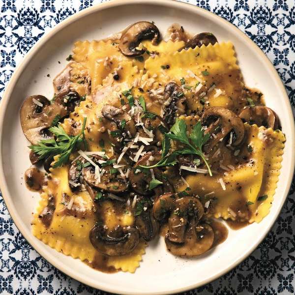 В качестве начинки к равиоли можно выбрать любые грибы. В нашем рецепте мы будем использовать шампиньоны, их понадобится 250 граммов. Также нужны следующие ингредиенты: