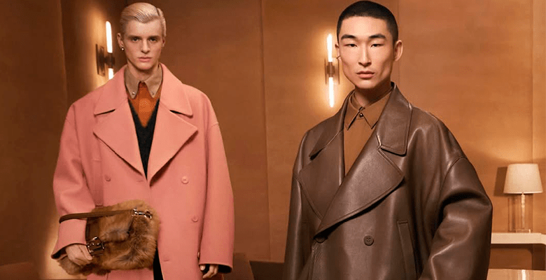 Еще одна характерная черта таких марок, как Fendi, Valentino и Gucci, – это предлагать мужчинам странноватые оттенки. То это клубнично-розовый, то лавандовый, то пастельно-зеленый, причем в виде верхней одежды или крупных вещей, а не в деталях и аксессуарах. Сложно представить нашего мужчину в розовом пальто или в лавандовой куртке-бомбере, потому что такие вещи обычно приобретаются на годы вперед и не в таких экстремальных оттенках.