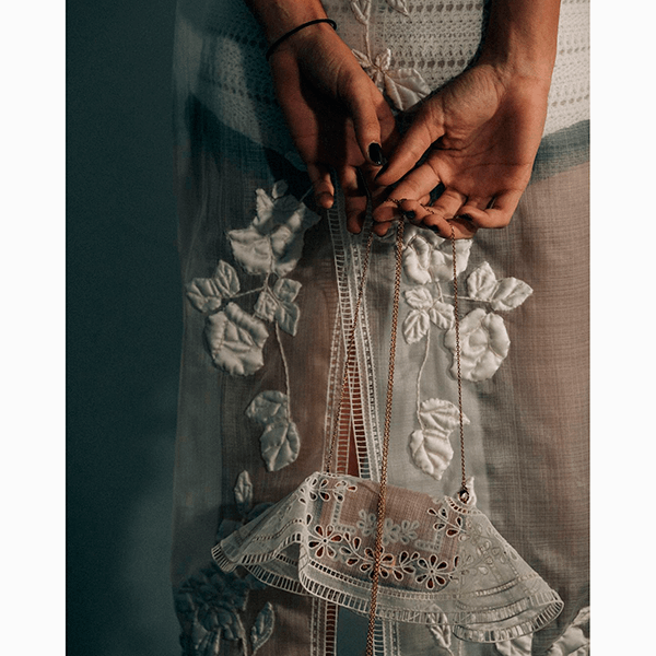 Дьявол, как известно, скрывается в деталях, и иногда эти детали очень легко воспроизвести самостоятельно, заручившись инструкцией от свадебных кутюрье. Ловите гениальную и простую идею от парижского свадебного дизайнера Rime Arodaky: поверх любой, даже цветной сумочки вы накидываете ажурную салфетку, и богемный на вид свадебный аксессуар готов!