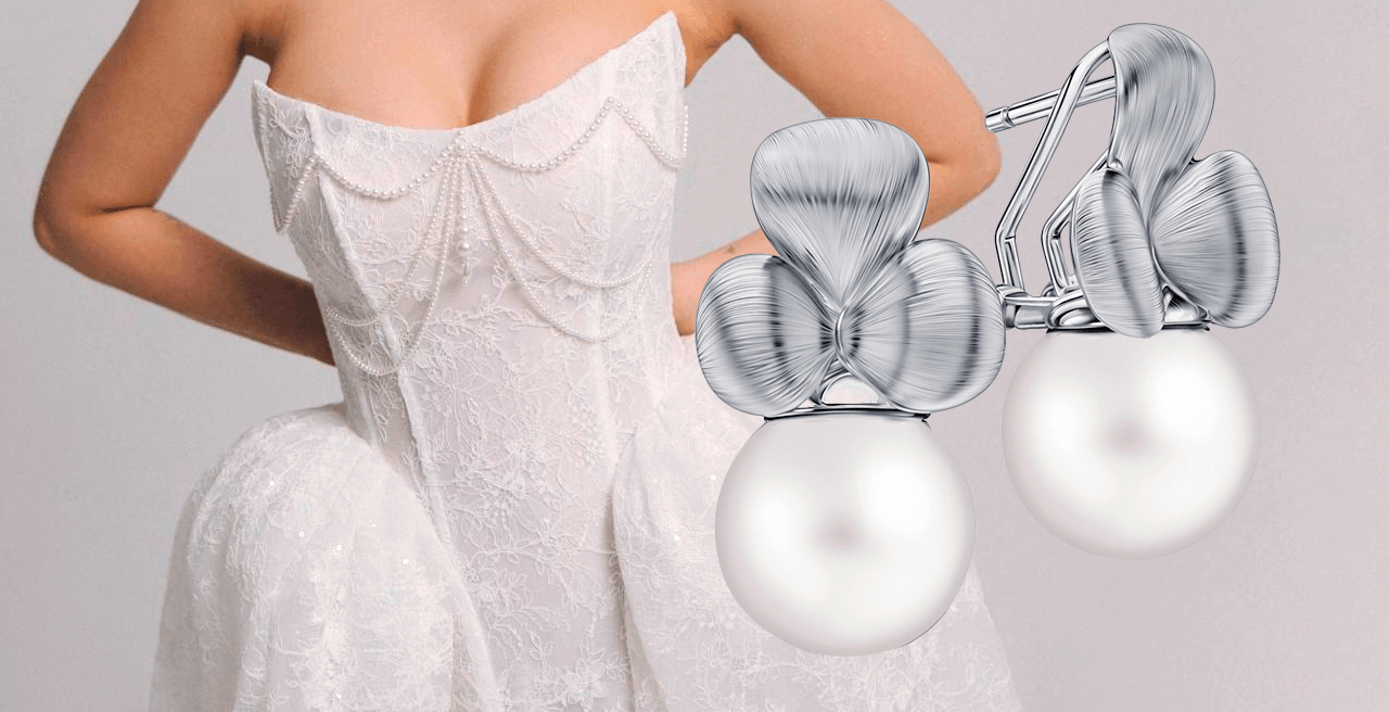 В мае прошлого года весь мир наблюдал за свадьбой одного из богатейших людей планеты Джеффа Безоса и Лорен Санчес. Закрытое кружевное платье невесты было вдохновлено образом Софи Лорен из фильма «Плавучий дом» и создано Доменико Дольче и Стефано Габбана. В ассортименте свадебных брендов можно найти похожие наряды силуэта «русалка». Я бы дополнила образ туфлями с бусинами в виде жемчужин. Вообще, для торжества лучше всего подбирать обувь на среднем или низком каблуке, чтобы было удобно передвигаться. Из украшений – серьги с крупным жемчугом и бриллиантами и необычное кольцо из белого и розового золота с алмазной огранкой.